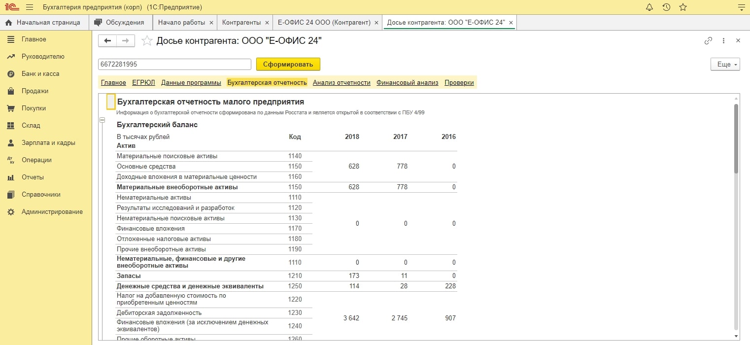 Просмотр данных о контрагентах в 1С Вам не нужно устанавливать дополнительное программное обеспечение на свой компьютер. Все действия производятся при работе с программой 1С. Данные о контрагентах автоматически заполняются. Достаточно ввести ИНН.