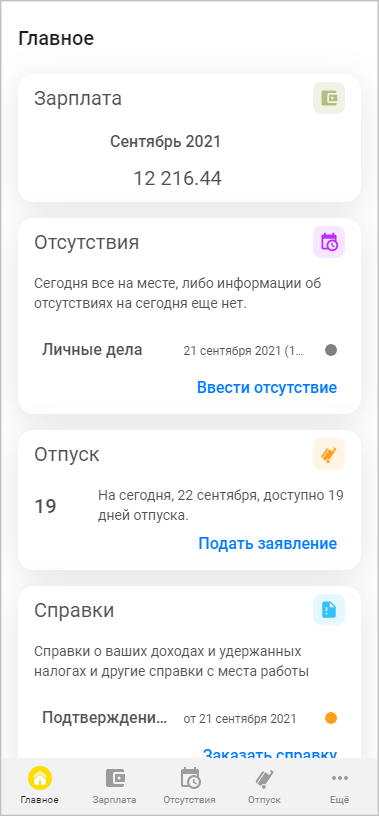 Расчетные листки, справки и документы теперь можно предоставлять в электронном виде. В любой момент сотрудник может сам посмотреть сведения о зарплате и отпуске.