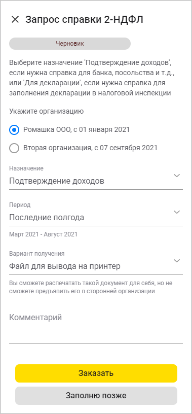 - запрос и получение справок (2-НДФЛ, с места работы и пр.)