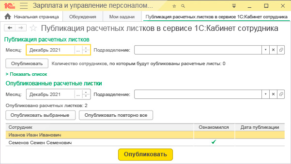 «1С:Кабинет сотрудника» встроен в программу 1С