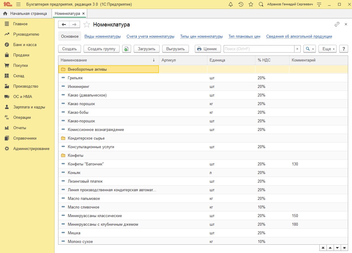 Рис. 1. Пример окна справочника «Номенклатура»