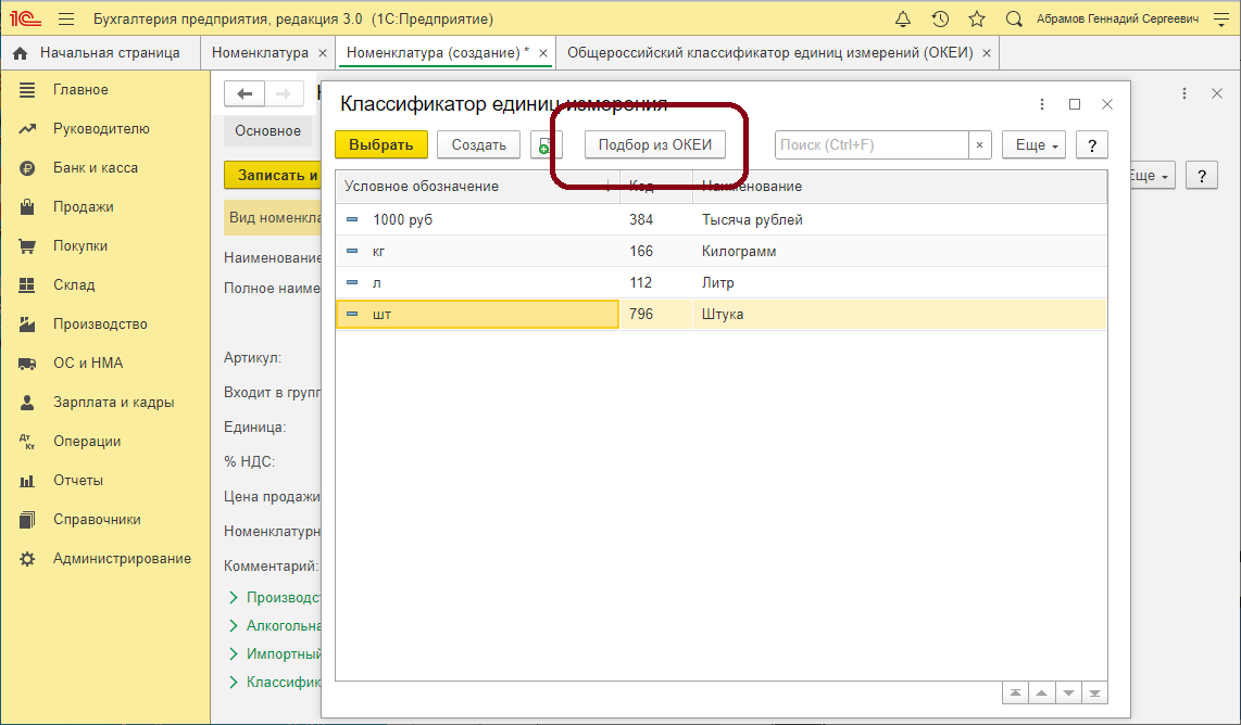 Рис. 7. Кнопка «Подбор из ОКЕИ»