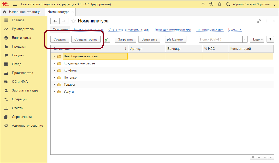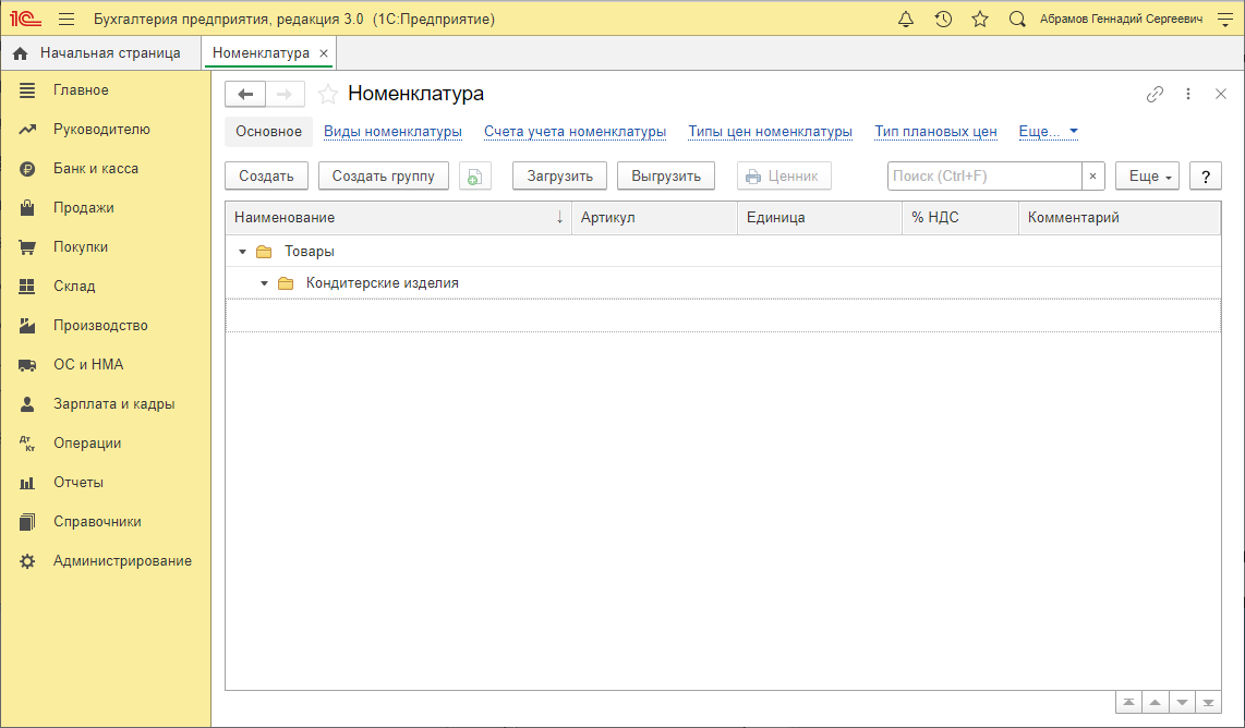 Добавьте в группу «Товары» подгруппу «Кондитерские изделия» Убедитесь, что Вы получили ту же иерархию, что и на картинке.