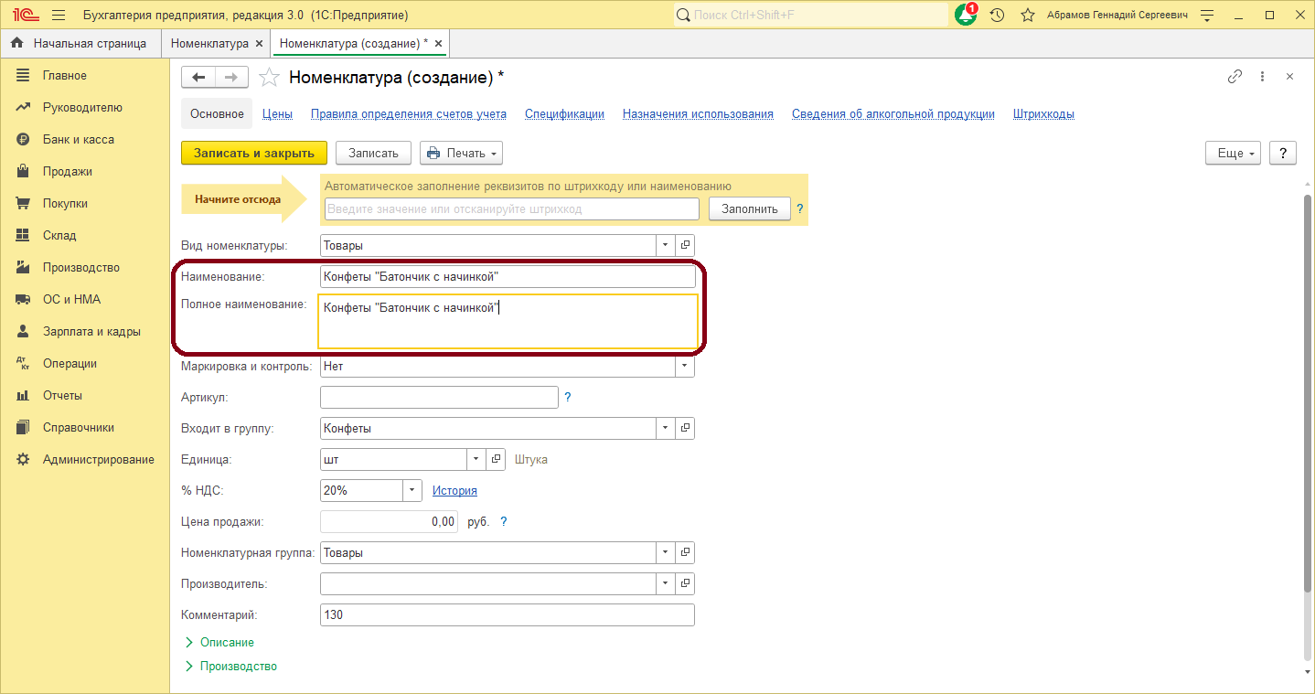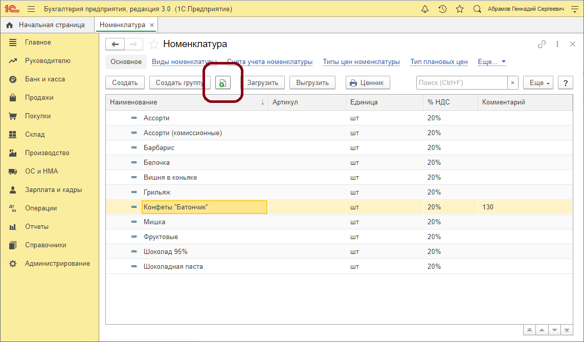 Для быстрого создания нового элемента или группы в справочнике можно воспользоваться кнопкой «Скопировать». Нужно сначала выделить номенклатуру, введенную ранее и нажать кнопку «Скопировать» (см. Рис.1).