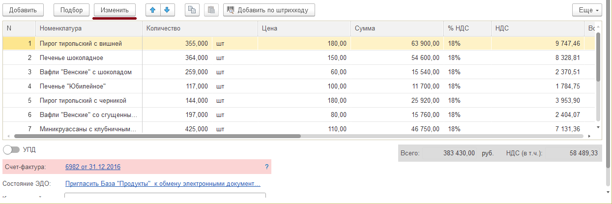 Рис.5. Форма документа, кнопка «Изменить»