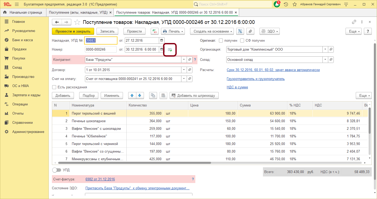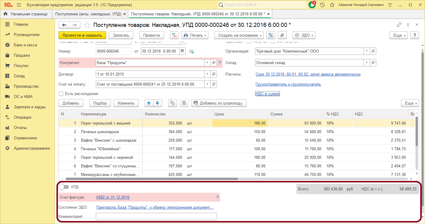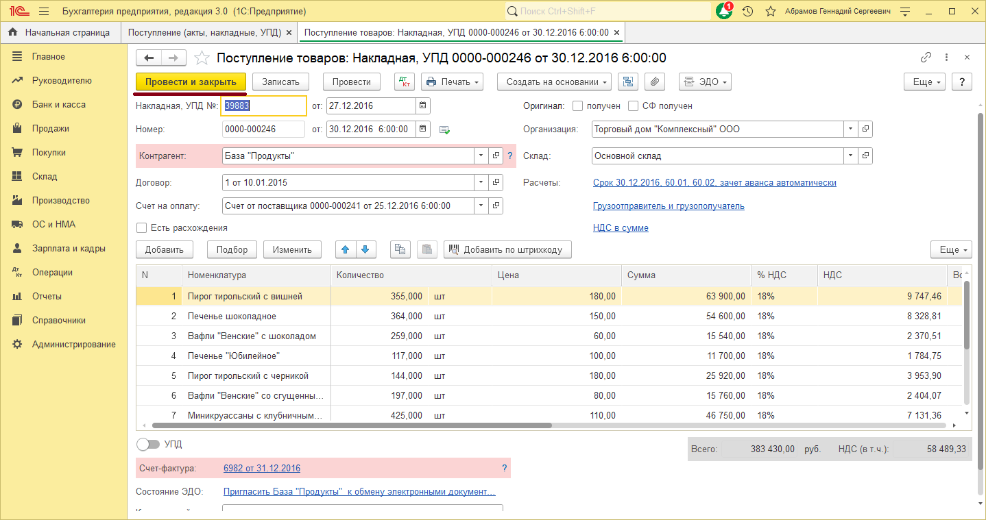 После того как работа с документом завершена, необходимо сохранить внесенные изменения и закрыть документ с помощью кнопки «Провести и закрыть» (см. Рис.5).