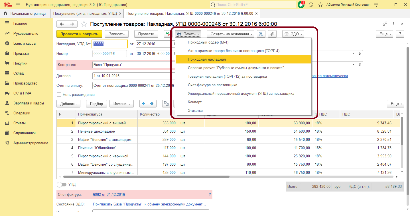 Также, на основе документа можно вывести печатную форму (см. Рис.4)