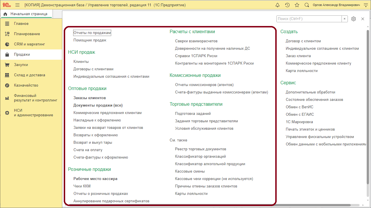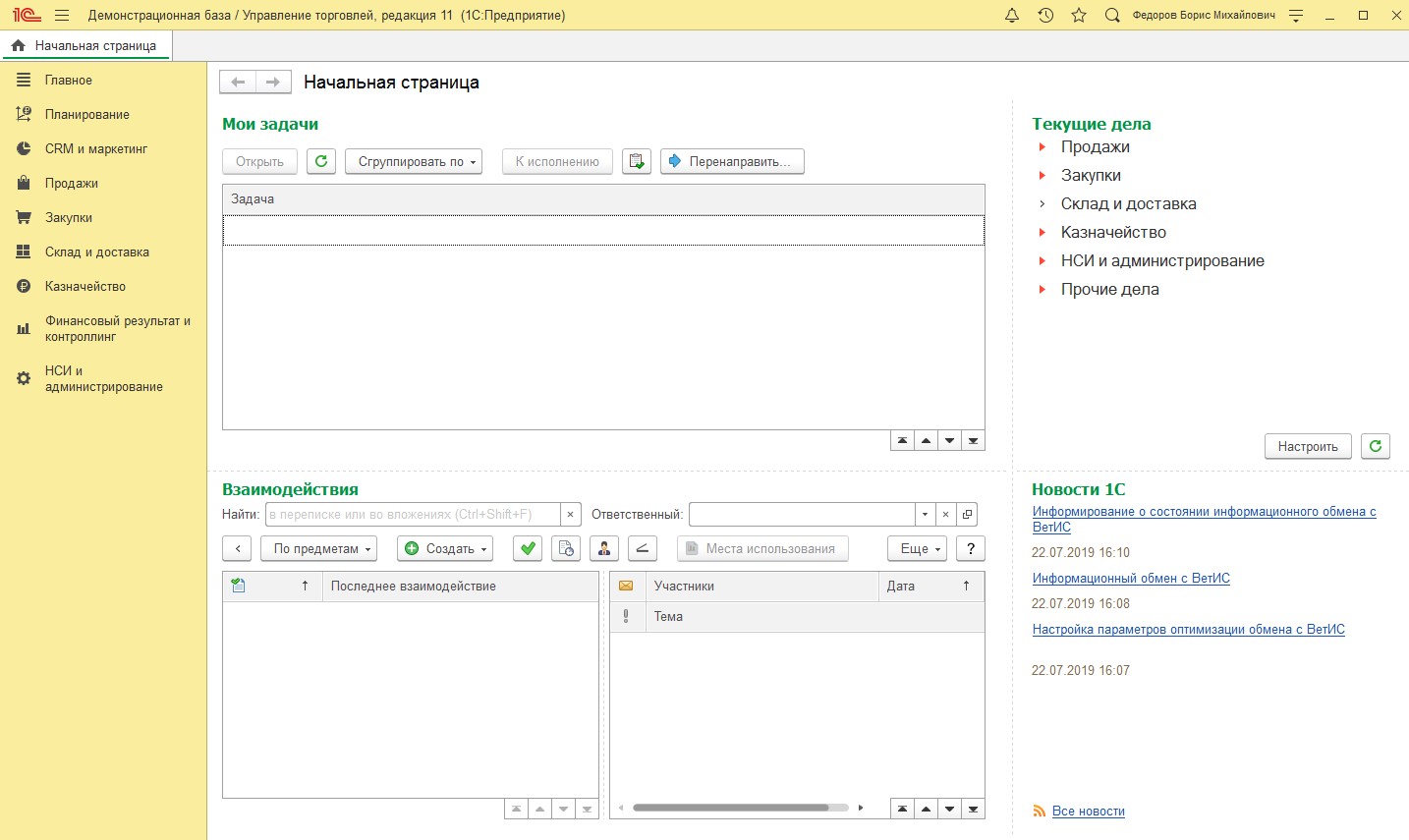 Рассмотрим интерфейс пользователя программы «1С:Управление торговлей».
