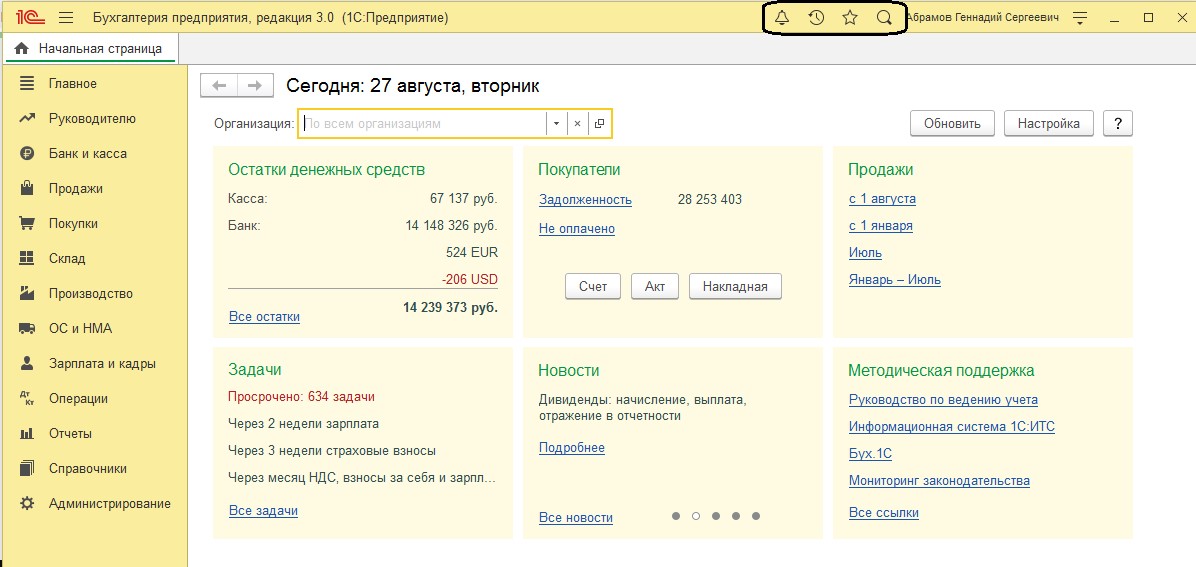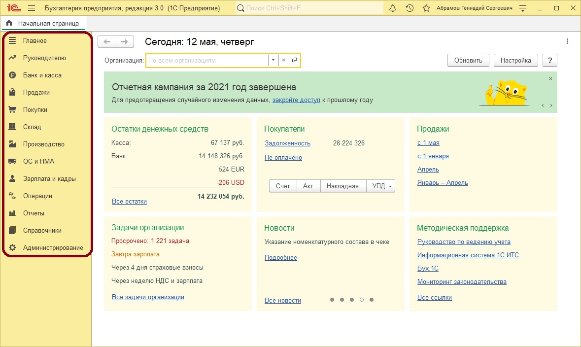 Рис.1. Интерфейс пользователя программы «1С:Бухгалтерия предприятия»